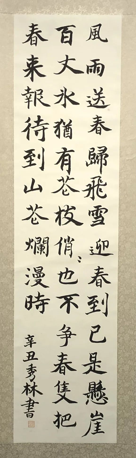 此次荣幸获奖,感谢学校专业老师的悉心教导。让我的专业大有提升,通过学习我认为书法并非只是线条和文字,更是用笔墨表达艺术语言和心境的一种方式。我认为学书有法,法无定法才是这门艺术的最高法,且好的作品在笔墨功夫的基础上往往是在不经意间将自己的情感流露于作品中,让人们感受其心境。如果书法只拘泥于笔墨,一板一眼,反而会缺失了书法艺术的生动性。