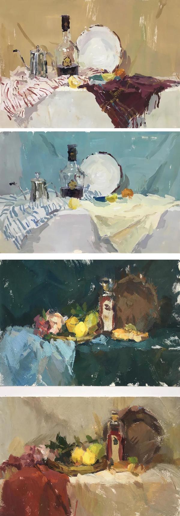 附中的色彩课堂教学围绕两大内容展开:一、感知和认识色彩一一掌握画面整体性的控制和色彩写生的观察,学生借助色彩学知识,认识自然色彩的变化规律,培养敏锐的色彩感受。二、色彩的表达与表现一一从直觉表达自然色彩效果,使学生掌握基本技艺,鼓励学生逐步尝试和吸收多种表现手法,引导其关注画面的形式构成,色彩构成,材质构成等。