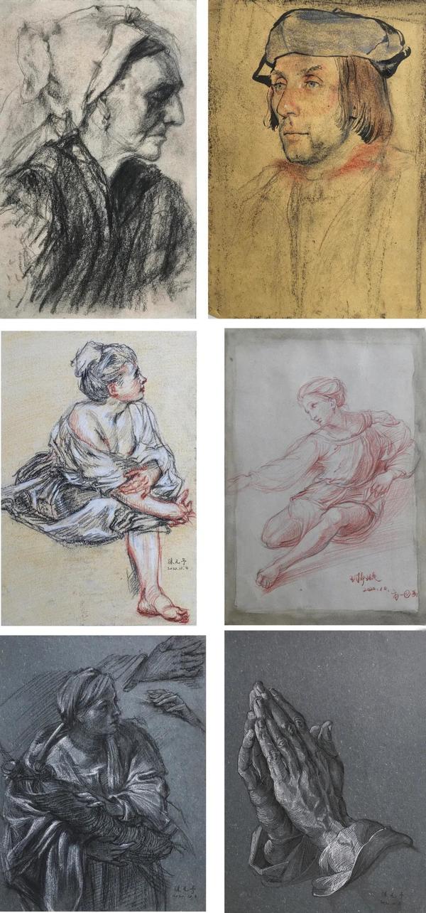 附中的速写课程围绕造型基础的训练展开:在一年级和二年级上学期,以人物速写为主要内容,通过单人及局部写生、大师经典作品临摹,使学生理解人体的结构规律、运动规律,以及衣纹的组织规律,引导学生对人物形象的感知,形成正确的认识。在二年级下学期和三年级,以人物组合速写和动态速写为主要内容,授课侧重于造型的精度与形象感知的敏锐度。