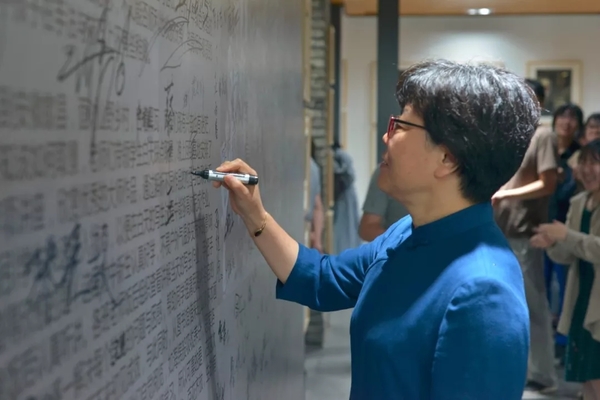 在展览现场,许江院长认真观看了每位同学的作品,并给予高度的评价。许江院长认为这些还是一年级的附中学生的作品让他“眼前一亮”、“远远超出他的想象”,他要求附中的老师们“继续抓基础、扎实的基本功很重要”、希望同学们“在这绿水青山之中,好好画画,以画养心”,并和在场的一年级学生约定……“七年之后,美院研究生时期再见面!”