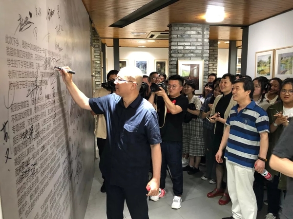 “丹青渔梁——附中2018级下乡作品汇报展”于2019年6月12日中午在象山之家开幕,著名艺术家秦大虎先生、佟飚老师、顾致农老师、王谦老师、戴雨享老师、朱卫东老师、陈涛老师、附中校领导、各科室负责人及2018级师生参加了开幕式。中国美术学院党委书记钱晓芳、院长许江、副院长姜玉峰也应邀前来观看展览。