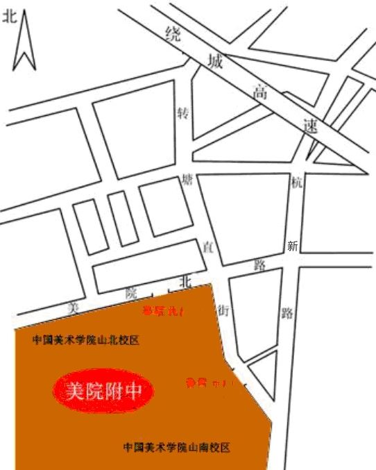 公交车站“转塘街道”站为美院北门入口,公交车站“江口村”站为美院东门入口。