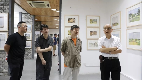 捐赠仪式结束后,秦大虎先生在附中校长陈宁、书记俞秀芳、副校长张俊和戴俊豪等老师的陪同下参观了附中2018级学生下乡作品汇报展。